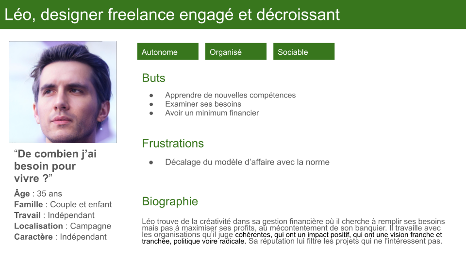 – Bonjour, moi c’est Léo. J’étais à la manifestation pour le climat il y a quinze jours. Je m’intéresse à tout ce qui est lié à la décroissance, au grand dam de mon banquier. J’ai une réflexion autour du temps que je prends pour les autres et ce temps j’ai envie de le passer avec un collectif qui a du sens pour moi.